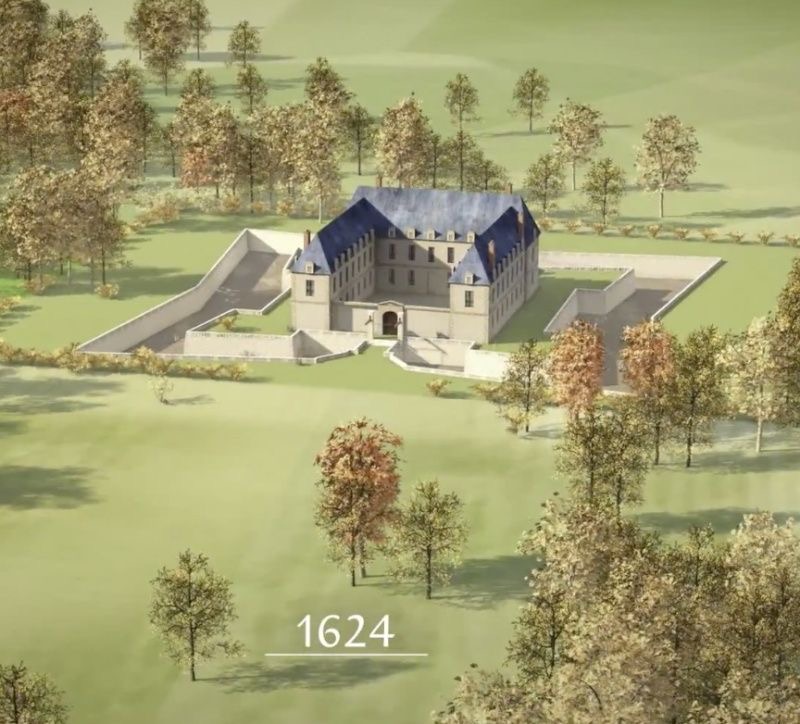 Вскоре такое положение вещей надоело королю, и он купил 40 гектаров земли у 16 разных владельцев, зимой 1623-1624 гг. решив, что настало время построить в Версале небольшой охотничий домик. Неизвестный архитектор возвел на холме П-образное здание длиной 24 метра и шириной в 6 метров из розового кирпича, белого камня и голубой черепицы. Людовик XIII постоянно приезжал в Версаль, чтобы наблюдать за ходом работ.