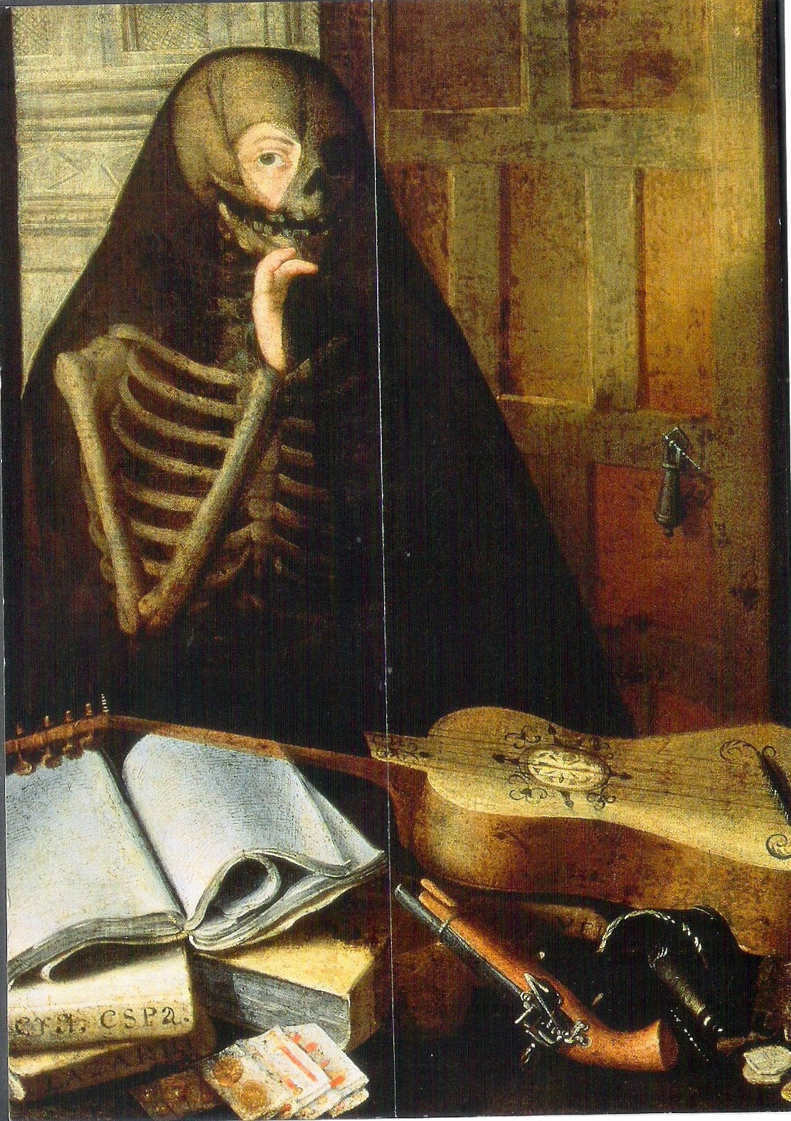 На фрагменте картины Педро де Кампробина (1605, Альмагро - 1674, Севилья) "Смерть и кабальеро" смерть одета, как севильская тапада - в угольно-черную мантилью, закрывающую все лицо, кроме одного глаза.