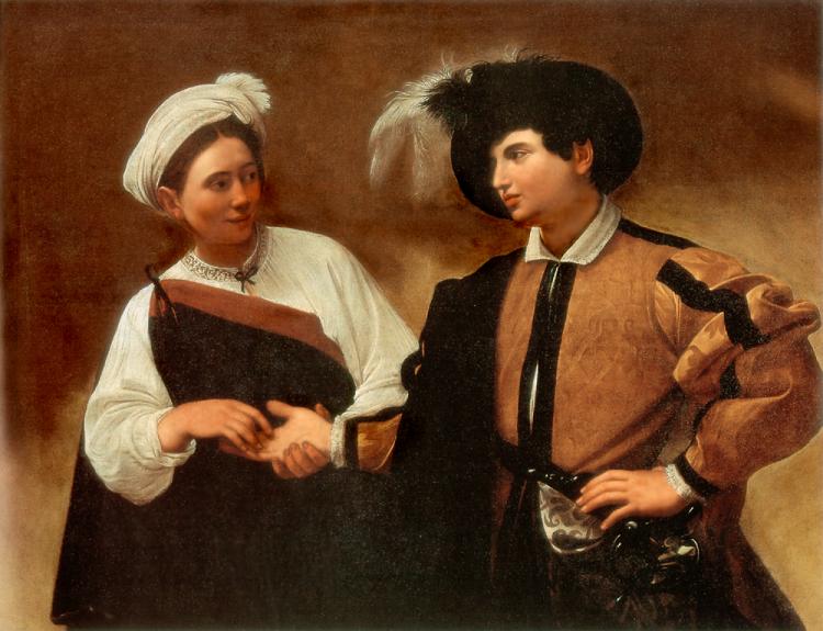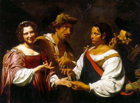 Жорж де Ла Тур (1593-1652, Вик-сюр-Сей, с 1646 г. - королевский живописец) "Гадалка" (1630-е, картина могла изображать сцену из театральной постановки).